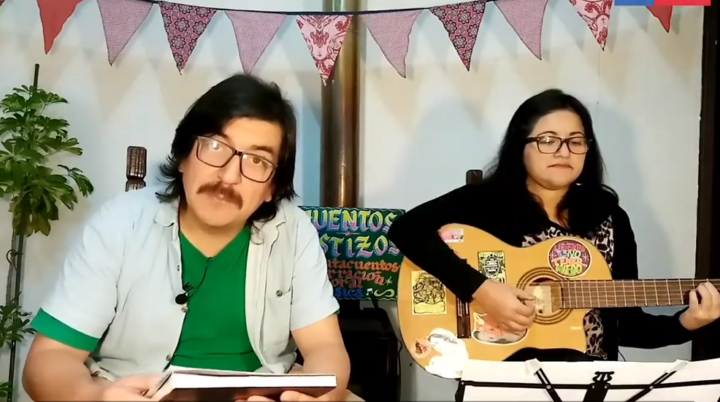 En la foto: compañía Cuentos Mestizos, Mes del Libro 2020.